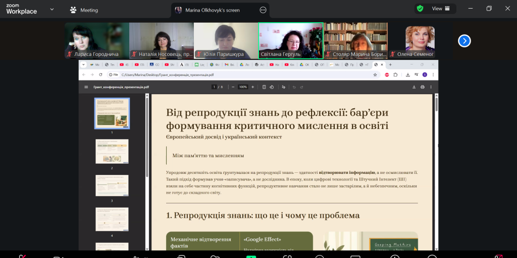 Під час пленарного засідання обговорювалися питання розвитку критичного мислення, формування медіаінформаційної грамотності в освіті, роль штучного інтелекту у підготовці педагогів, європейський досвід протидії дезінформації. Серед спікерів — провідні науковці: проф. Олена Семеног, проф. Ольга Лілік, доц. Оксана Торубара, доц. Марина Ольховик, доц. Марина Кеда, проф. Олена Колесник та інші.