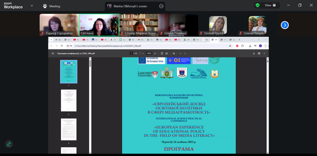 24 жовтня 2025 року на базі Національного університету «Чернігівський колегіум» імені Т.Г. Шевченка відбулася Міжнародна науково-практична конференція «Європейський досвід освітньої політики в сфері медіаграмотності». Захід організовано в межах грантової програми Erasmus+ Jean Monnet Module «European experience in combating disinformation and propaganda: basic skills for the teacher of the future» (101127022–NETTING–ERASMUS-JMO).