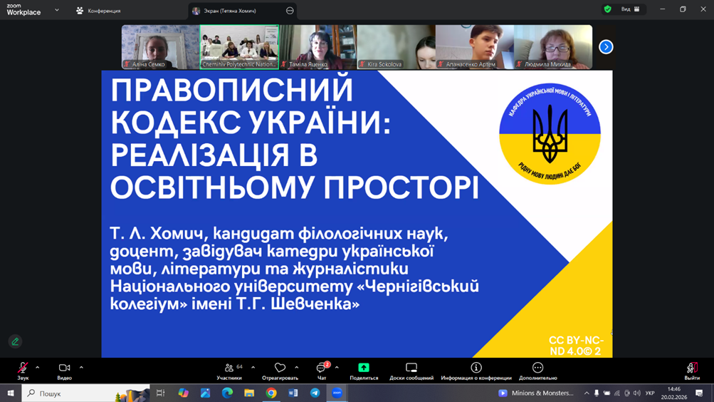 20 лютого 2026 року студенти 3 курсу філологійного факультету разом із викладачами катедри української мови, літератури та журналістики Гроною Наталією Вікторівною та Хомич Тетяною Леонідівною мали змогу долучитися до цього важливого заходу. Модератор зустрічі – Національний університет «Чернігівська політехніка». Подія об’єднала близько сотні учасників.