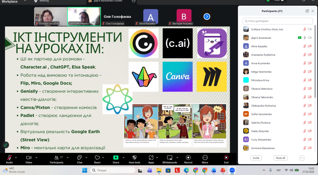 Окрему аналітичну цінність має секція «Актуальні питання методики навчання іноземних мов у закладах загальної середньої та вищої освіти», яка об’єднала близько 40 учасників. До роботи секції долучилися представники провідних університетів України — Київського національного університету імені Тараса Шевченка, Київського національного лінгвістичного університету та Київського університету імені Бориса Грінченка. Тематика доповідей охоплювала впровадження підходу CLIL, використання штучного інтелекту, ІКТ та проєктних методик у процесі навчання іноземних мов.